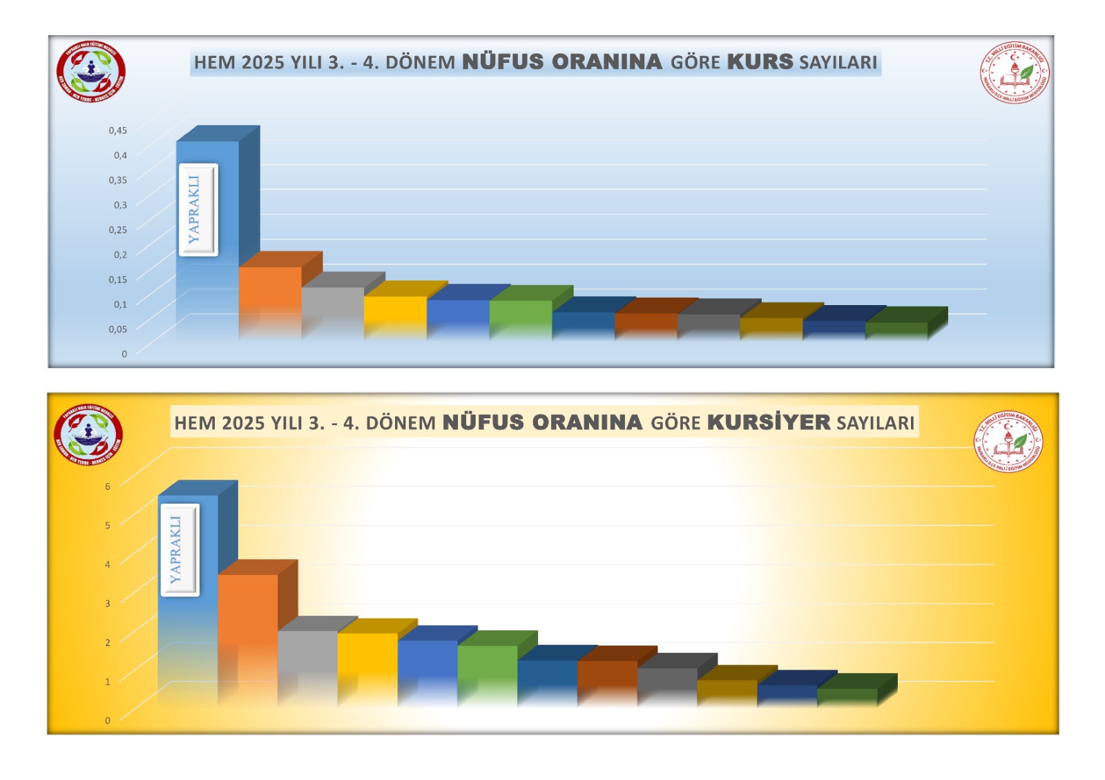 Gerek Kurs Sayısı gerek Kurssiter Sayısı bakımından Nüfusa Oranla Çankırı’da Yapraklı HEM açık ara ilk sırada yerini aldı.